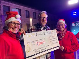 Am 15.12.2025 haben wir unsere Jahreseinnahmen gespendet und einen Scheck über 1.111 Euro am Burgplatz in Essen an Jan-Malte Andresen